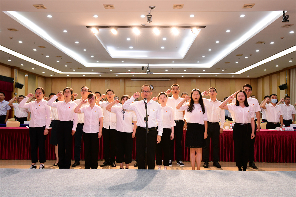 公司黨委書記、董事長劉偉帶領(lǐng)新黨員宣誓,與會的全體黨員共同重溫入黨誓詞。