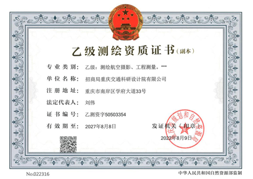 招商交科取得測繪乙級資質(zhì)