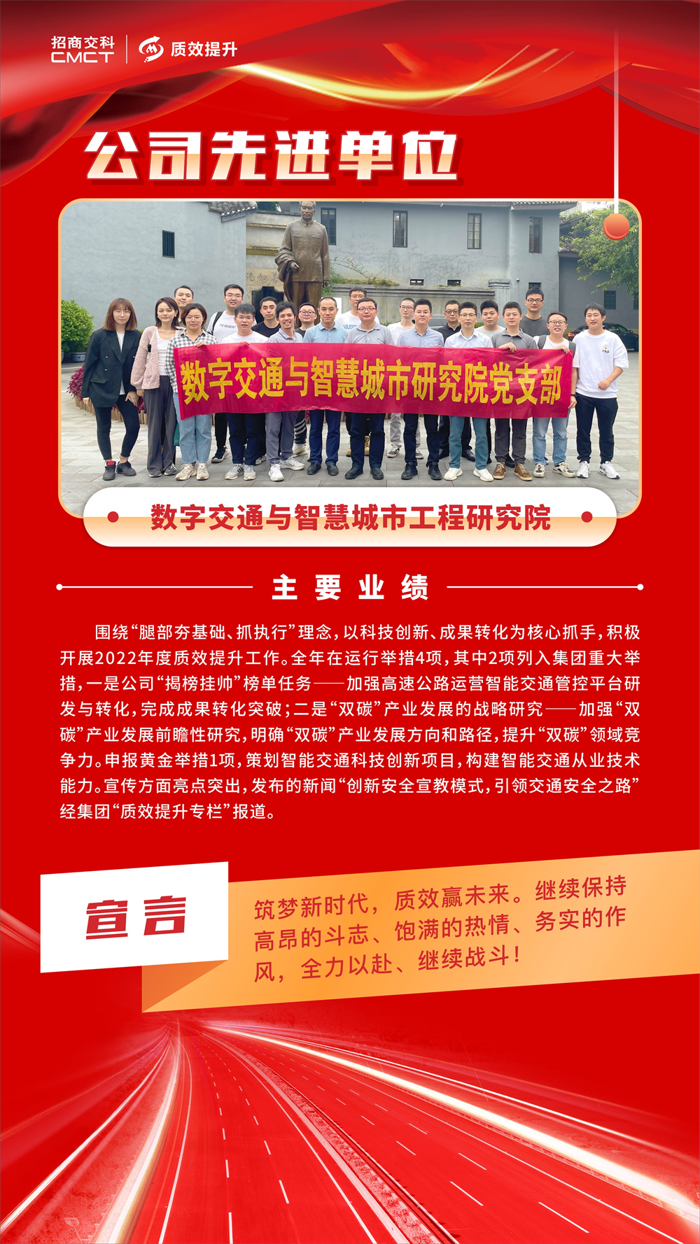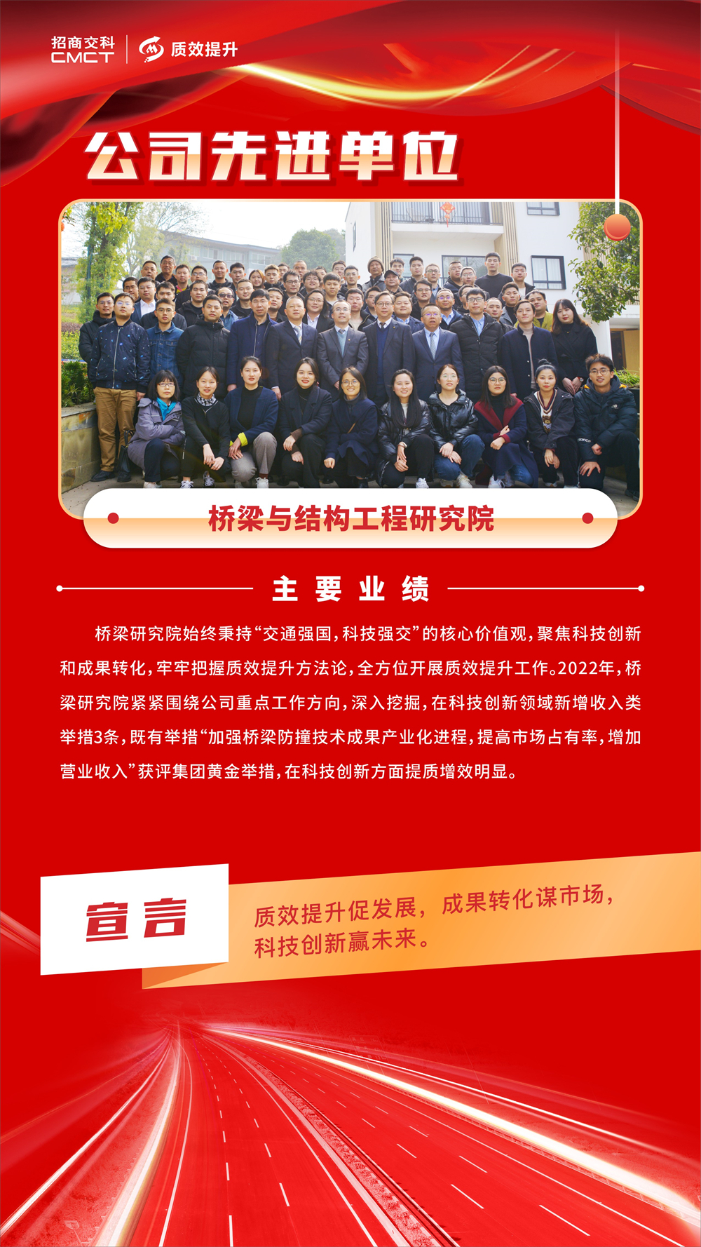 ? 各部門和單位要以先進單位、先進個人為榜樣,堅定不移推動質效提升工作走深走實,助力招商交科高質量發(fā)展。