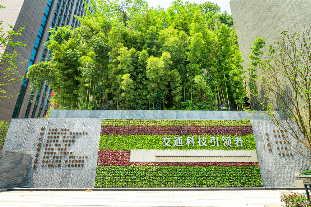 三、打造綠色低碳園區(qū)——設(shè)計(jì)利用場地高差,應(yīng)用招商交科自己的科技成果,設(shè)置了光草坪、海綿花園、生態(tài)花境、透水鋪裝、健康步道、光伏發(fā)電等。