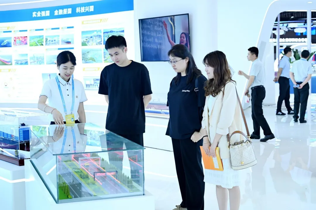 展廳介紹了集團(tuán)交通物流、綜合金融、城市與園區(qū)綜合開(kāi)發(fā)、戰(zhàn)略性新興產(chǎn)業(yè)等業(yè)務(wù)情況,積極展示服務(wù)成渝地區(qū)雙城經(jīng)濟(jì)圈、西部陸海新通道建設(shè)成效。高端游輪、地標(biāo)性大橋、智慧隧道等模型,吸引了眾多參觀者駐足。