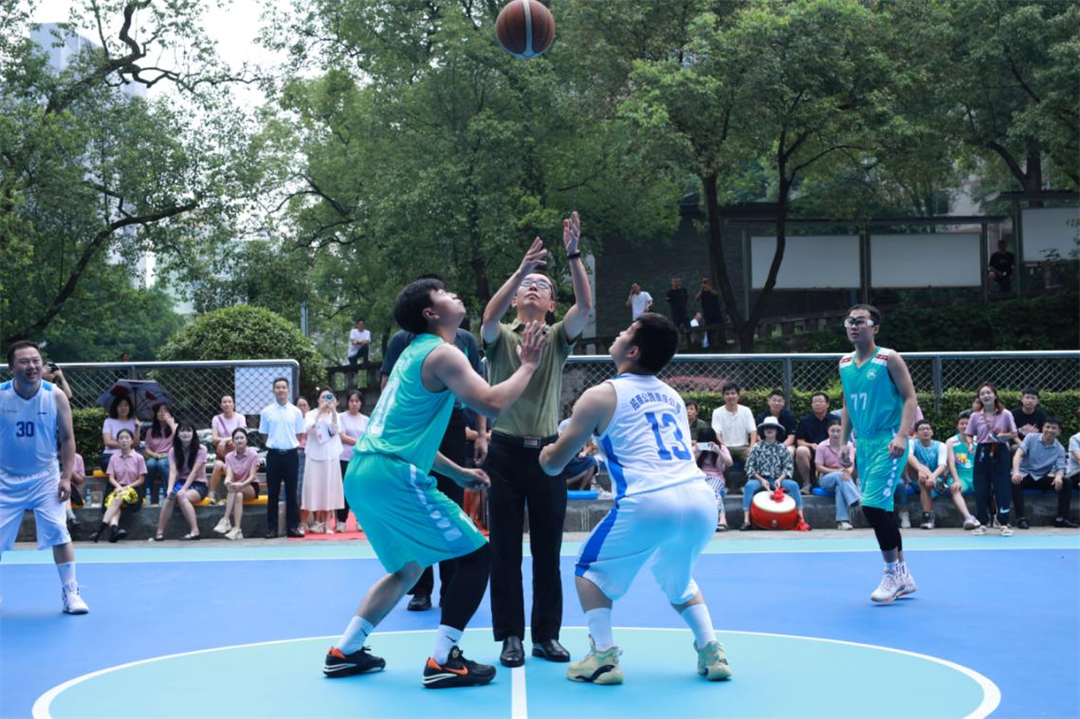 吳永清為籃球賽開(kāi)球。賽場(chǎng)上,雙方隊(duì)員積極拼搶?zhuān)瑲夥站o張熱烈。每一次精準(zhǔn)的投籃、巧妙的傳球、堅(jiān)固的防守,都讓現(xiàn)場(chǎng)觀眾情緒高漲,熱血沸騰。球員們?cè)趫?chǎng)上展現(xiàn)出了不俗的球技和堅(jiān)韌的競(jìng)技精神,觀眾們則用熱烈的掌聲和歡呼為他們的每一次精彩表現(xiàn)喝彩。