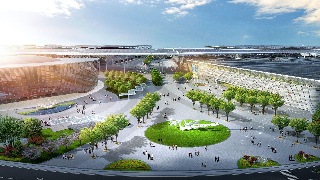 會(huì)展中心景觀在充分融合“杭扇與絲綢”建筑設(shè)計(jì)概念和元素的基礎(chǔ)上,整體以“大國(guó)之風(fēng)”為設(shè)計(jì)理念,采用簡(jiǎn)約、飄逸、靈動(dòng)、大氣的設(shè)計(jì)風(fēng)格,充分展現(xiàn)“展城融合”的設(shè)計(jì)亮點(diǎn),通過(guò)設(shè)計(jì)使會(huì)展中心滿足展城融合的功能性,塑造全民參與的公共活動(dòng)空間,營(yíng)造多功能的市民活動(dòng)開(kāi)放空間,傳承杭州地方特色文化,打造現(xiàn)代、高效、開(kāi)放且具有杭州特色的會(huì)展中心景觀,使其成為展城融合典范、城市景觀標(biāo)桿。