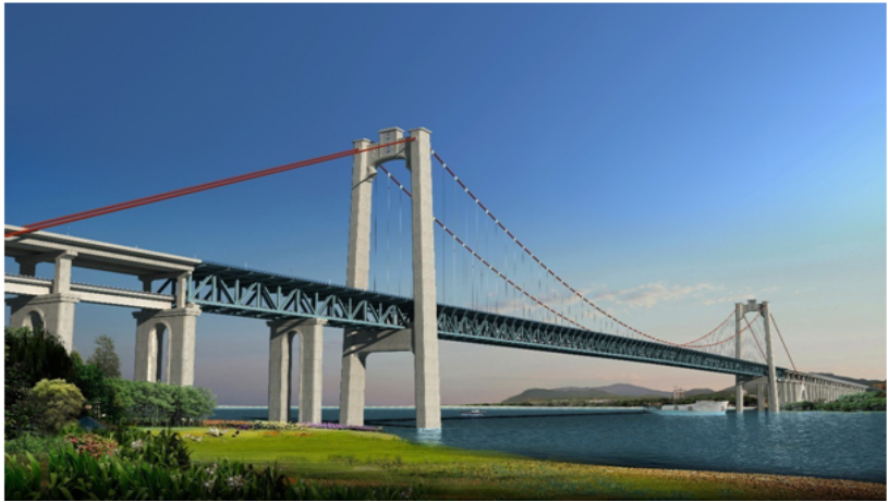 五峰山長(zhǎng)江大橋位于江蘇鎮(zhèn)江,大橋主跨1092米,主橋?yàn)榧觿配撹炝簯宜鳂?;全橋主纜索股2×336束,每束索股由127根直徑為5.5毫米鍍鋅高強(qiáng)鋼絲組成,索股長(zhǎng)度1932米,索股總重超過(guò)3.3萬(wàn)噸。